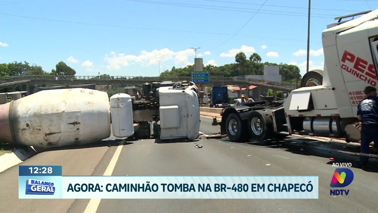 Colisão provoca bloqueio do trânsito na BR-480 em Chapecó