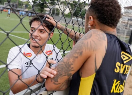 Neymar esteve presente no CT Rei Pelé na quarta-feira (7) assistiu ao duelo entre Santos e Grêmio. O Peixe venceu…