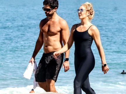Duda Nagle e namorada curtem manhã de caminhada na orla de São Conrado