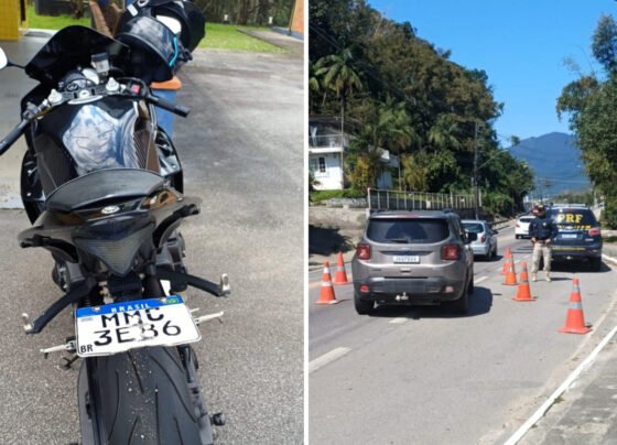 Policiais rodoviários federais prenderam um motociclista que participava de corrida ilegal na BR-282, em Rancho Queimado, na Grande Florianópolis. O…