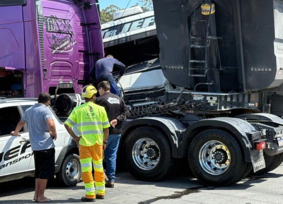 Um acidente envolvendo duas carretas foi registrado no início da tarde desta segunda-feira (29), no trevo de acesso Sul de…