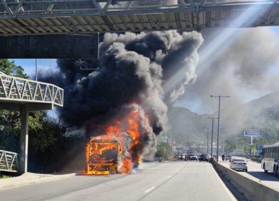 Ônibus pega fogo e deixa uma vítima na SC-401, em Florianópolis