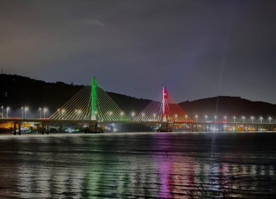 A Ponte Anita Garibaldi, um dos principais cartões-postais de Santa Catarina, está recebendo uma iluminação especial nas cores da bandeira…