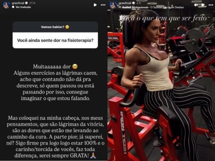 Em recuperação após cirurgia no joelho, Gracyanne relata dores intensas: “lágrimas caem”