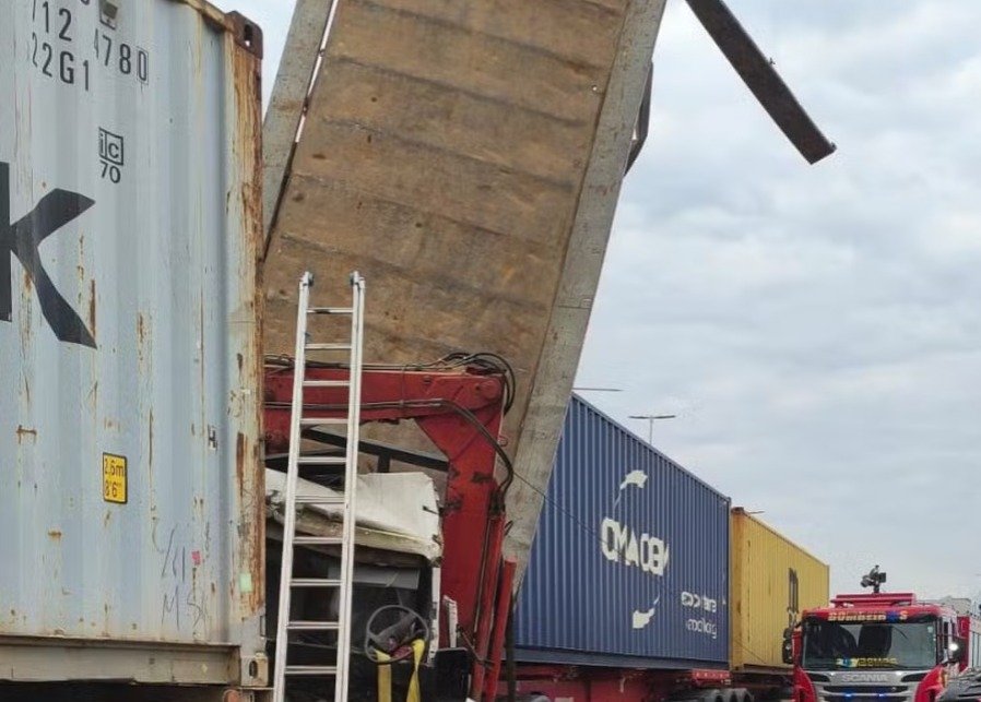 Um grave acidente envolvendo caminhões bloqueou o trânsito na BR-470, em Indaial, no Vale do Itajaí, na manhã desta terça-feira (16). De acordo com informações iniciais, pelo menos duas pessoas ficaram presas às ferragens após a colisão.