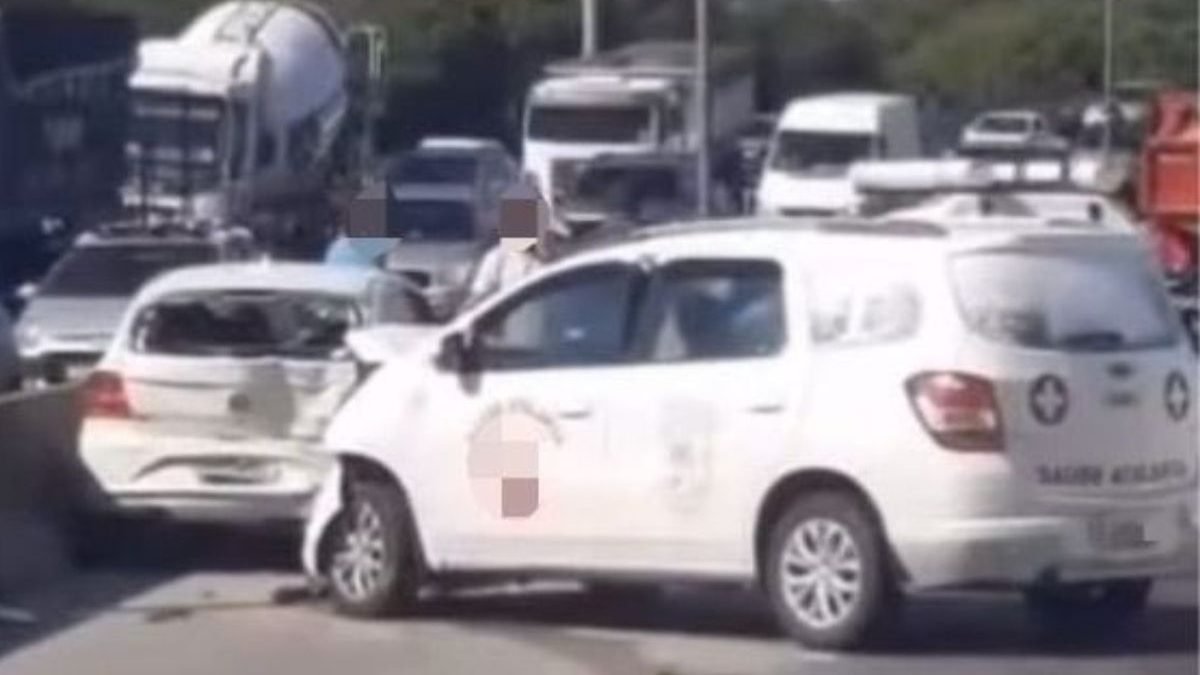 Além disso, a imagem mostra que um dos veículos do acidente é o carro da saúde de algum município. No entanto, a foto compartilhada borra qual seria a prefeitura responsável pelo automóvel.