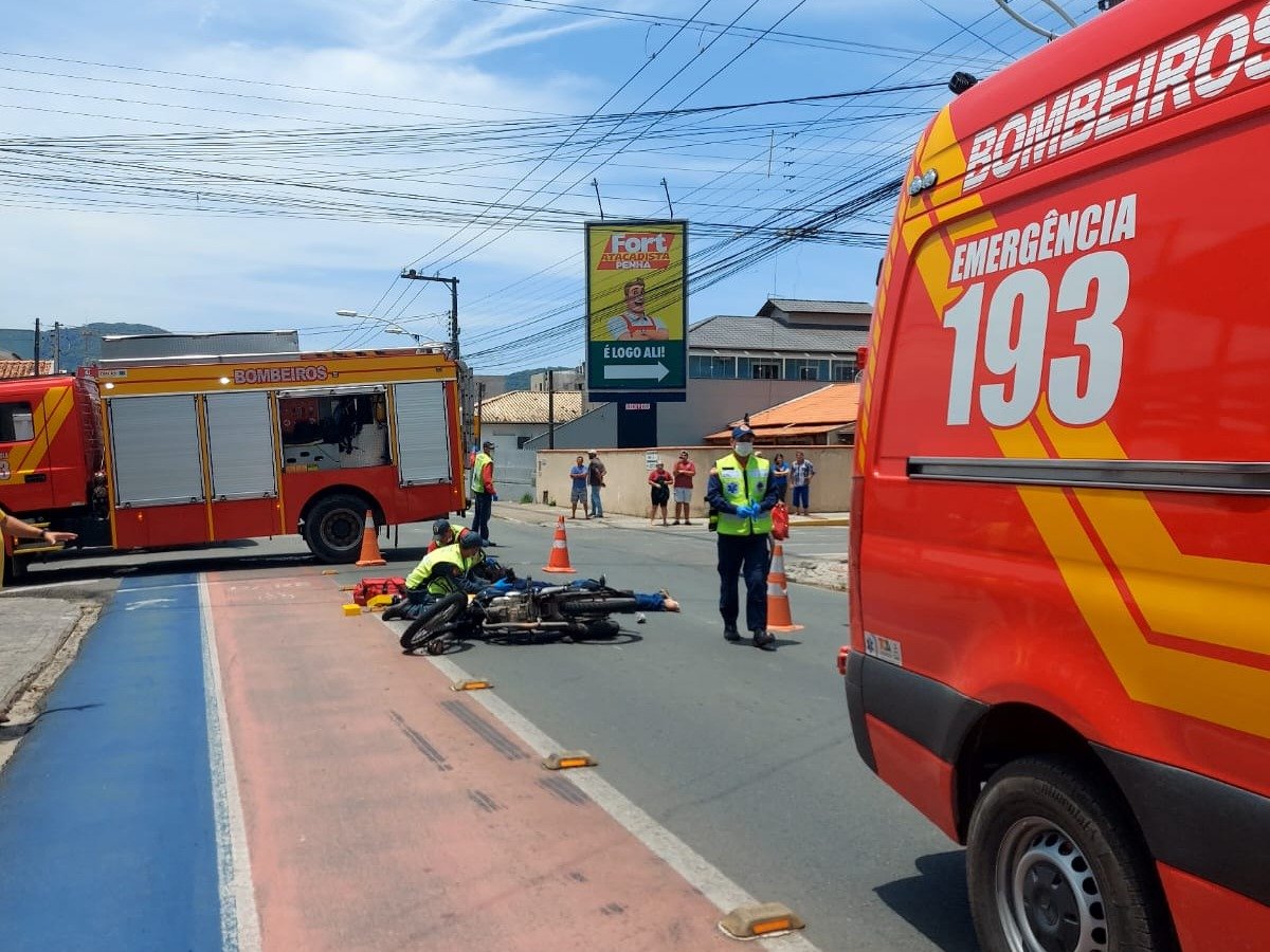 Um motociclista ficou ferido após uma colisão lateral registrada na manhã desta sexta-feira, 14 de novembro de 2025, na Avenida Eugênio Krause, no bairro Armação, em Penha. O acidente ocorreu por volta das 11h45, próximo ao Boteco Sertanejo.