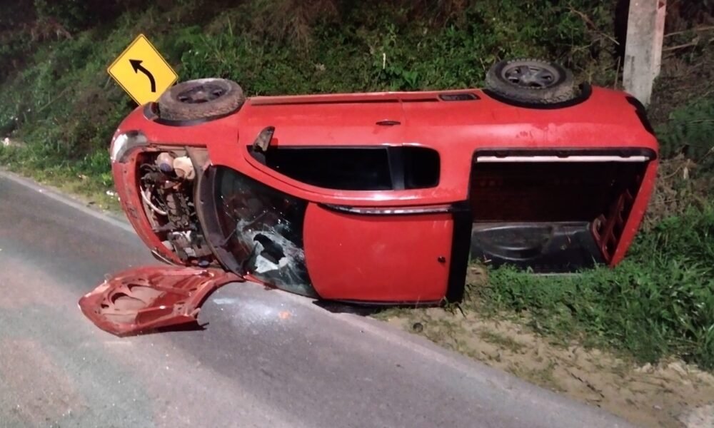 Logo após, a equipe do CBMSC deslocou para o segundo veículo, uma Volkswagen/Saveiro, de cor vermelha, que se encontrava cerca de 200m de distância.