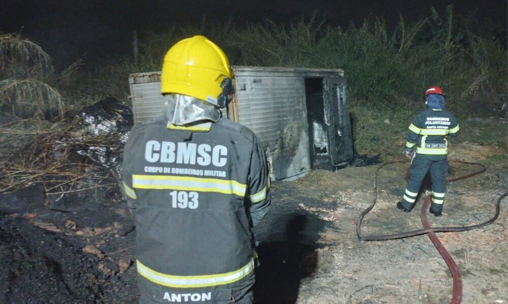 Na madrugada desta terça-feira (19), por volta das 3h28, o Corpo de Bombeiros de Araquari foi acionado para atender um incêndio em um baú de caminhão descartado, localizado na Rua Juviniano da Maia, no bairro Ponto Alto, em Araquari. Além da estrutura, as chamas atingiram entulhos próximos, com grande quantidade de plástico e madeira. Não havia veículo automotor envolvido, apenas o baú, que já estava fora de uso.