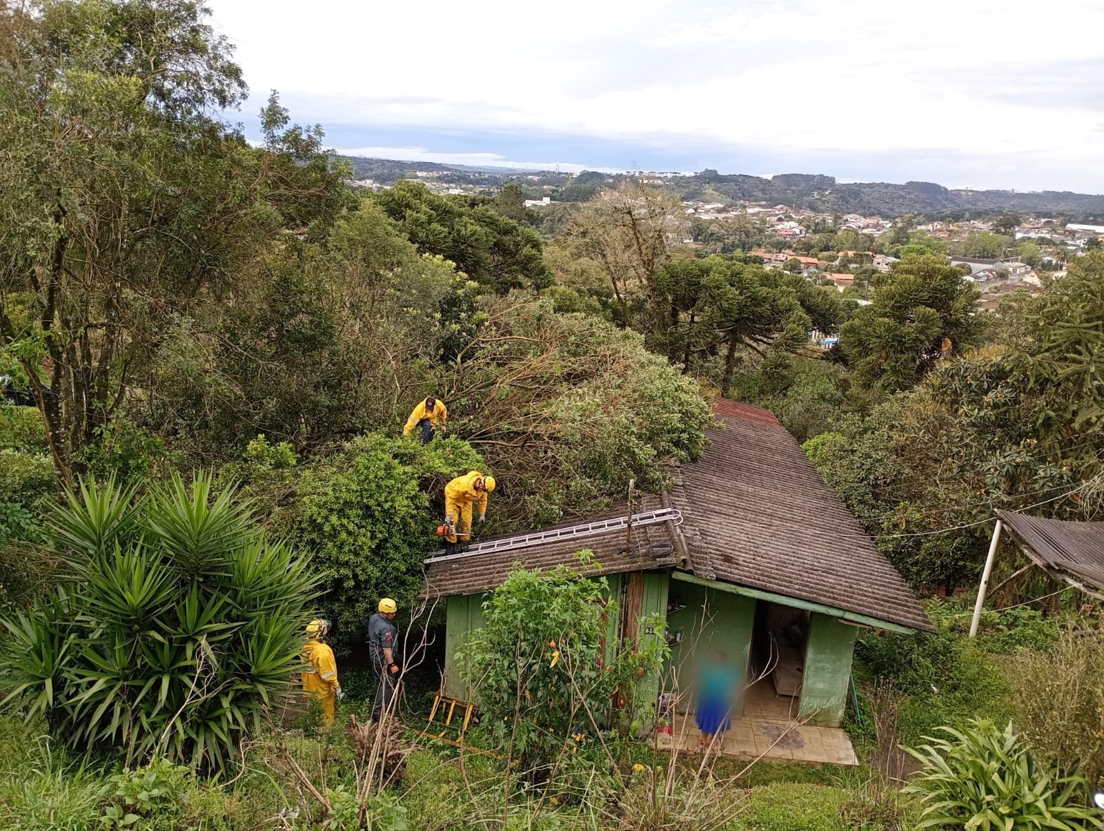 • Rio Negrinho: seis atendimentos quase simultâneos, incluindo destelhamentos e apoio à Celesc devido a postes quebrados.