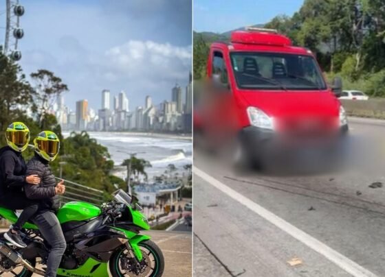 Casal morreu em um grave acidente em Itapema.Foto: Reprodução/ND Mais Um grave acidente de trânsito matou o casal de motociclistas…