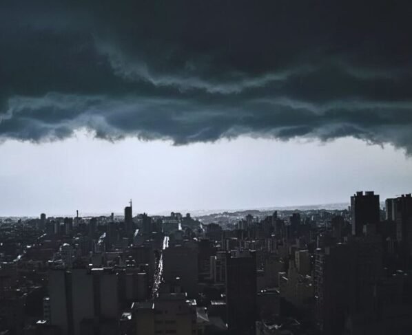 A mudança brusca no tempo é causada por uma área de baixa pressão que se desloca para o alto mar, dando origem a um ciclone extratropical. Este fenômeno meteorológico funciona como um “organizador” de nuvens carregadas, espalhando tempestades por boa parte do território nacional nos próximos dias.
