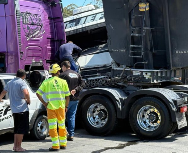 De acordo com informações preliminares, um dos motoristas não conseguiu frear a tempo e atingiu a traseira de outra carreta que passava pelo local. A batida foi considerada de forte intensidade por testemunhas, mas não houve registro de vítimas fatais.