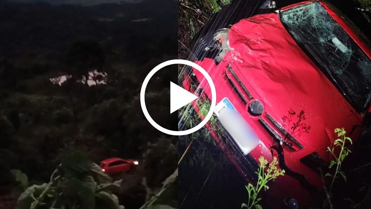 Gol onde estavam mãe e filha caiu em ribanceira – Reprodução/PMRv