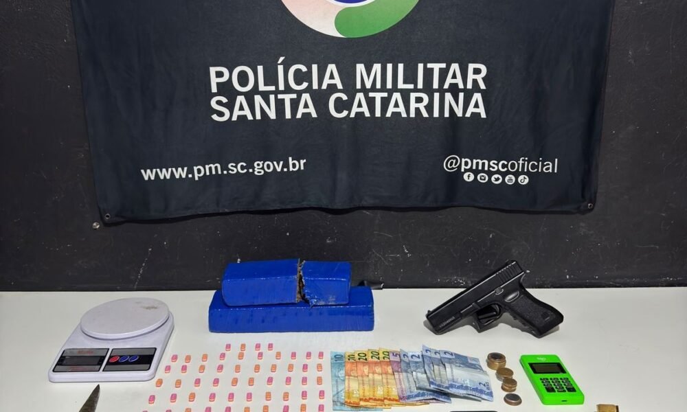 • Dupla é presa com drogas e réplica de arma em Itajaí