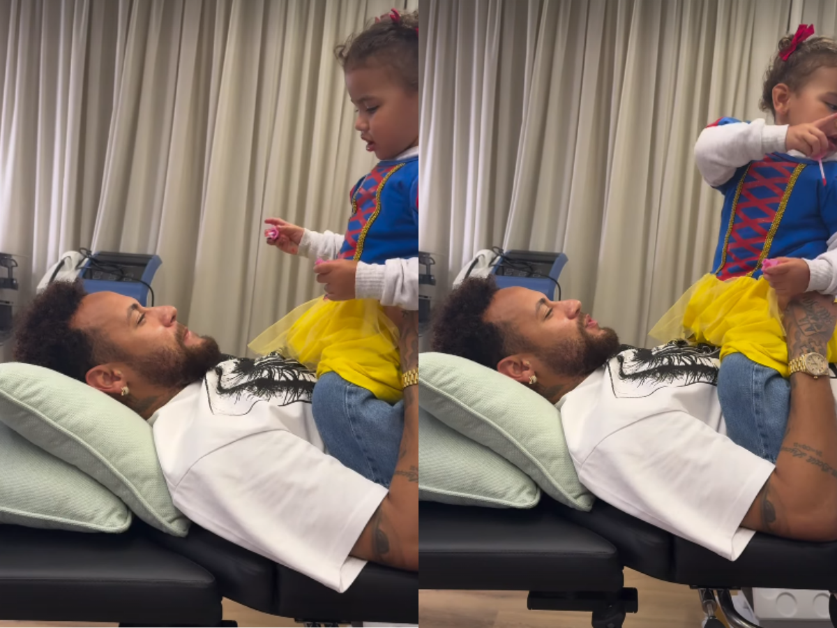 O look de princesa utilizado pela bebê é o mesmo que ela usou há cerca de duas semanas, em outro flagra com Neymar compartilhado por Biancardi. Na ocasião, pai e filha foram filmados dançando a música “Domingo de Manhã”, da dupla Marcos & Belutti, no último dia 11. A avó paterna do craque, dona Berenice, completou 86 anos na data.