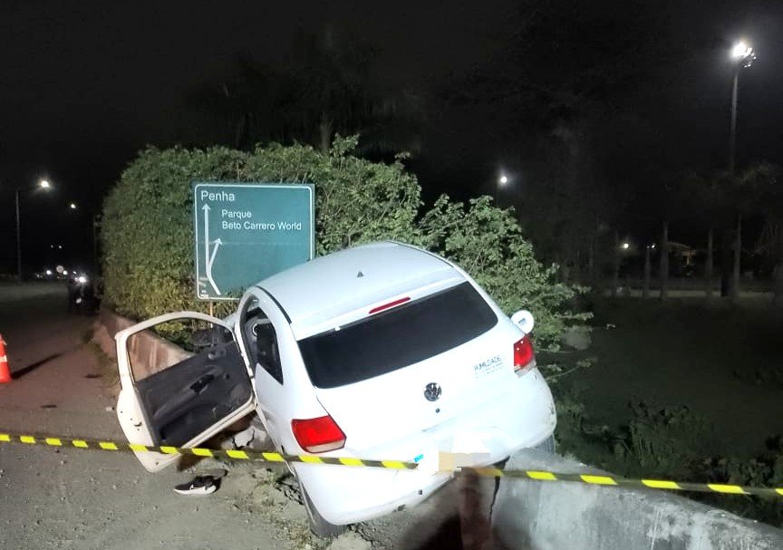 Saída de pista de automóvel, seguida de colisão contra mureta na Rodovia Beto Carrero World, em Penha, deixou três pessoas feridas na noite desse sábado (20). O Corpo de Bombeiros Militar foi acionado por volta das 22h para atender a ocorrência.