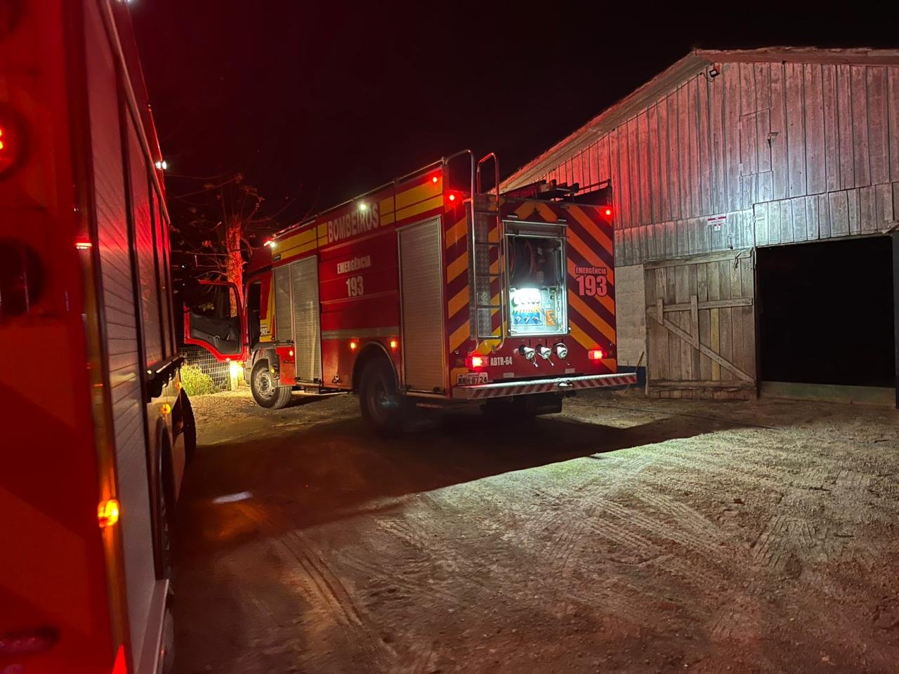 O Corpo de Bombeiros foi acionado para combater um incêndio em um aviário de cerca de 1.400 m². As chamas tiveram início na região da fornalha e começaram a se espalhar para o restante da estrutura. O primeiro controle foi feito pelo proprietário e por moradores da região, que utilizaram água até a chegada da guarnição.