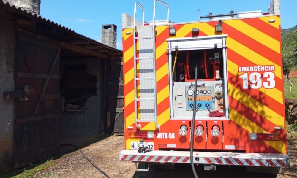 Um incêndio atingiu um galpão de alvenaria com cerca de 150 metros quadrados, localizado na zona rural do município de Turvo