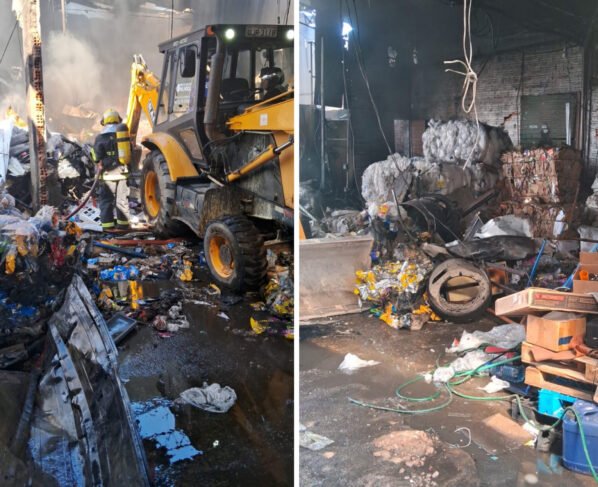• Incêndio de grandes proporções atinge galpão de reciclagem em Palhoça