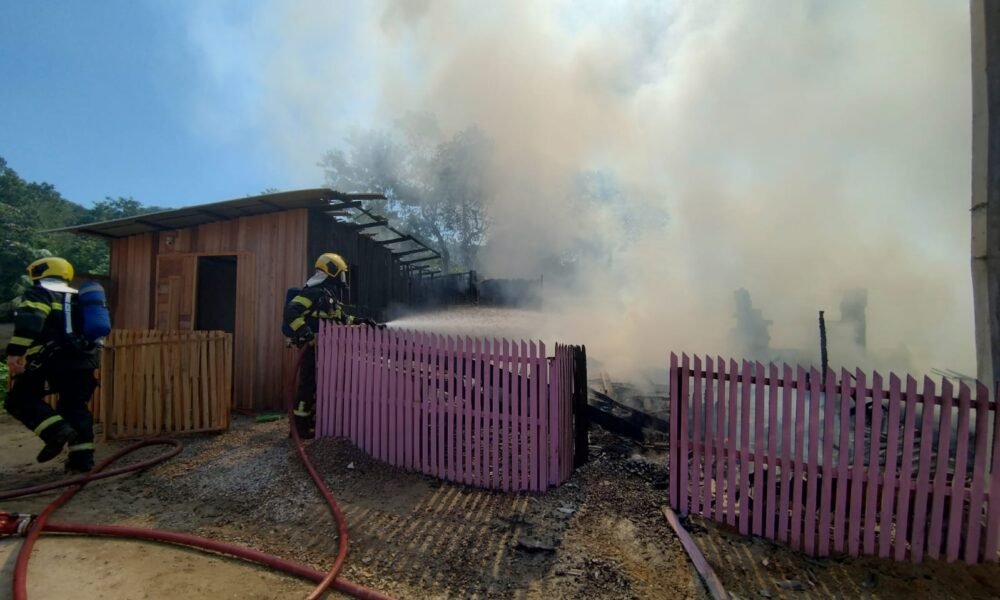 Ao chegarem, os bombeiros constataram que uma residência havia sido totalmente consumida pelo fogo e que as chamas também atingiram parte de uma casa vizinha. O incêndio foi controlado sem registro de vítimas, e as equipes permanecem no local realizando o rescaldo para evitar novos focos.