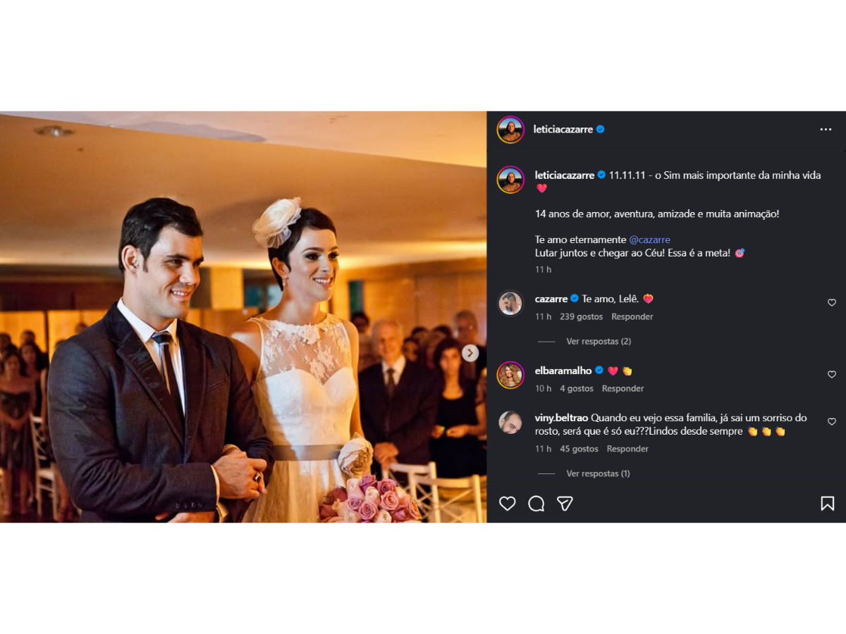Postagem de Leticia Cazarré comemorando os 11 anos de casadosReprodução Instagram Leticia Cazarré