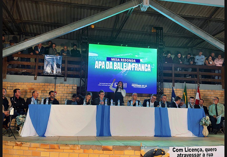 Audiência pública foi realizada na noite dessa quinta-feira (17), em Jaguaruna, com a mobilização de moradores, prefeitos da região sul de Santa Catarina, deputados federais e lideranças políticas para discutir os impactos da atual delimitação da Área de Proteção Ambiental (APA) da Baleia Franca.