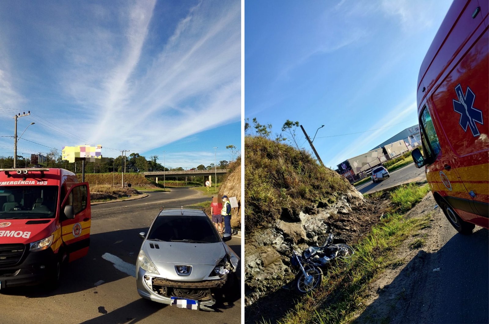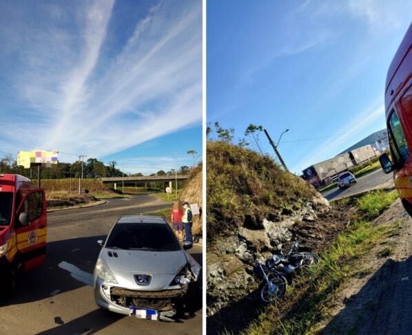 Um grave acidente de trânsito foi registrado por volta das 6h14, deste sábado (11), na Rodovia Jorge Zanatta, no bairro Presidente Vargas, em Içara. A colisão envolveu um automóvel Peugeot 207 e uma motocicleta Honda CG.