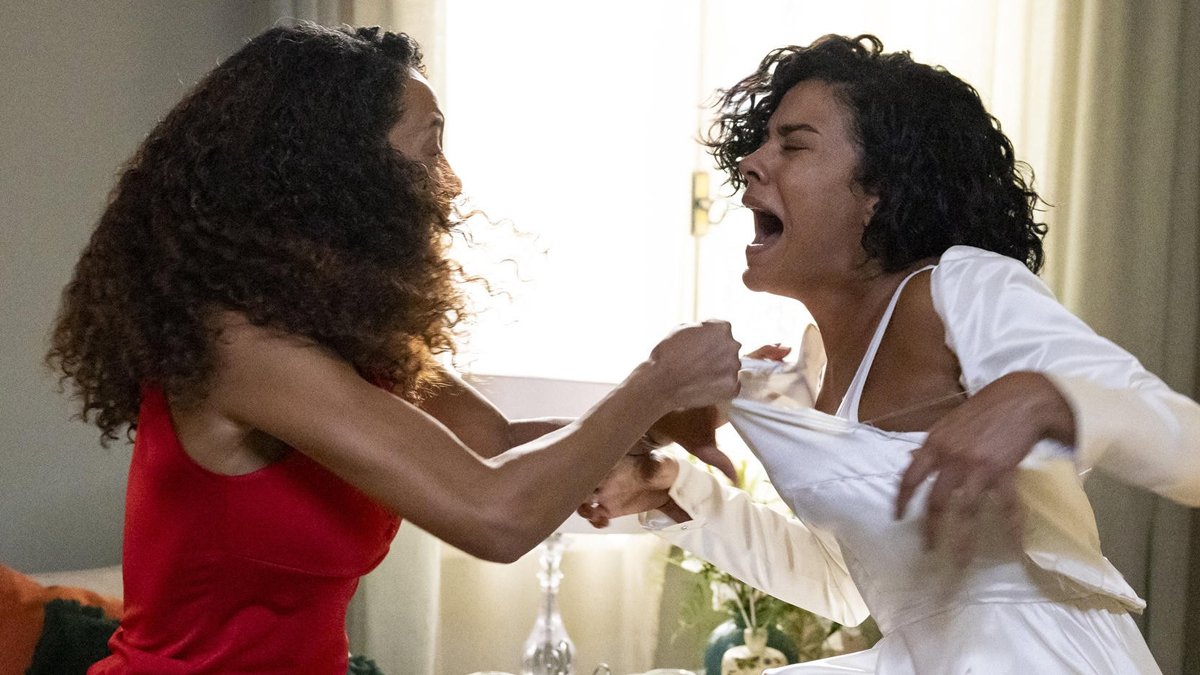 Em um momento de desespero, Raquel rasga o vestido de noiva de Maria de Fátima, um gesto simbólico que marca o fim das expectativas de um futuro próximo entre elas.