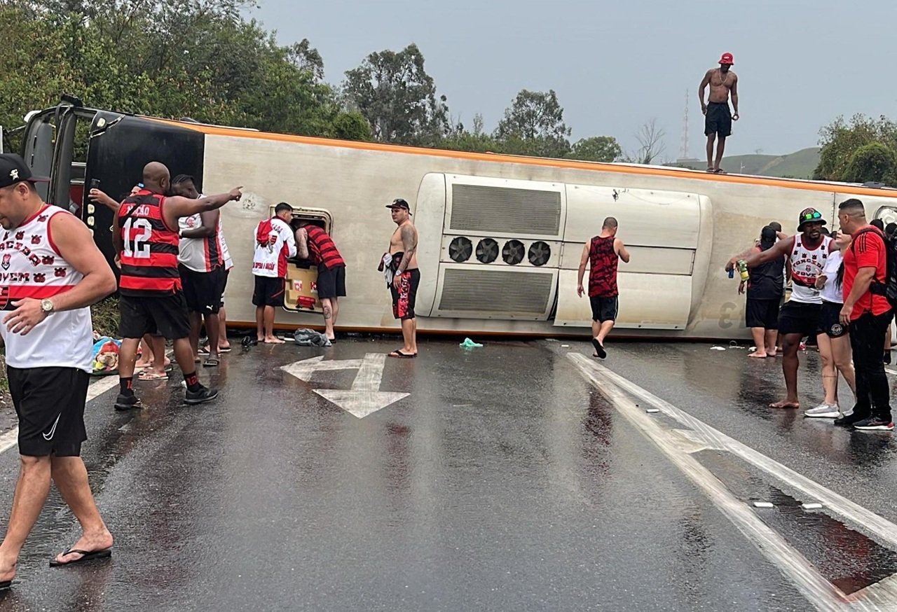 Os 46 passageiros do ônibus, integrantes das torcidas organizadas Urubuzada e Nação 12, estavam a caminho de Buenos Aires, na Argentina, onde o Rubro-Negro enfrenta, na próxima quarta-feira (29), o Racing, pelas semifinais da Copa Libertadores.