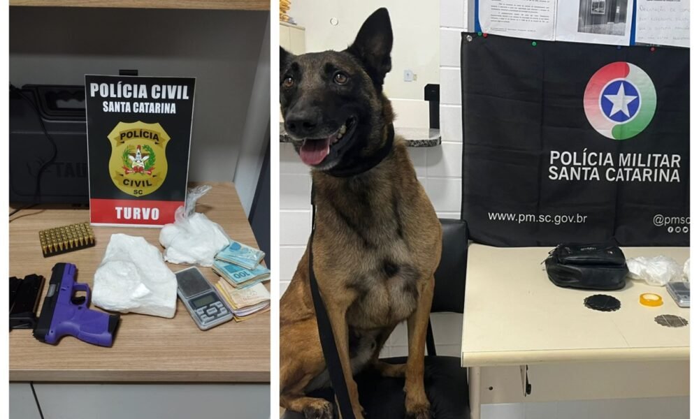 Ação policial conjunta, na tarde dessa quinta-feira (17), resultou na prisão de um suspeito e na apreensão de entorpecentes, no bairro São Brás, em Turvo. A Polícia Civil e a Polícia Militar atuaram de forma integrada na operação contra o tráfico de drogas.