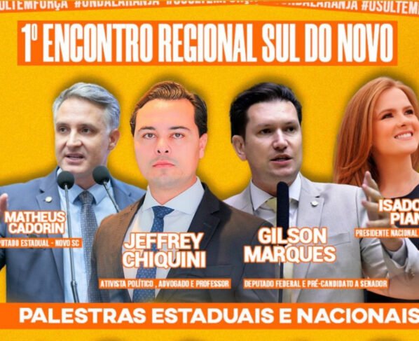 A atividade reunirá mandatários, filiados e lideranças do Novo em Santa Catarina, em um espaço dedicado à construção de propostas, troca de experiências e organização partidária no sul do estado.