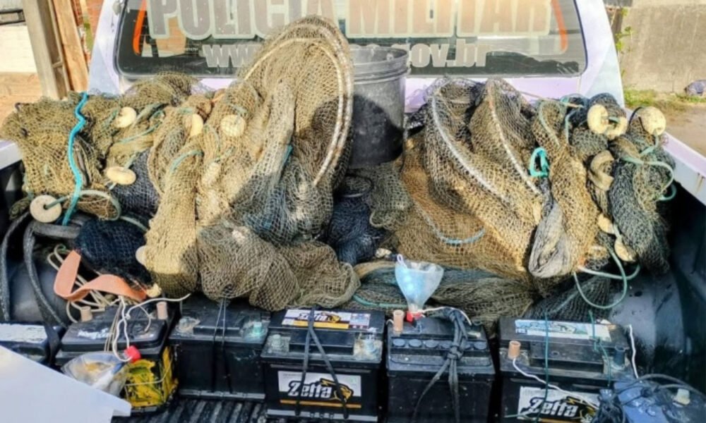 Além da apreensão do camarão, foram recolhidas quatro baterias, nove redes “aviãozinho” em posse do infrator, e outras 23 redes e 24 baterias encontradas abandonadas nas proximidades. A restrição do uso desses apetrechos, prevista para vigorar até 15 de novembro, também abrange as lagoas de Mirim, Imaruí, Santo Antônio, Santa Marta, Noca, Ribeirão Pequeno e Manteiga, conforme normativa estadual.