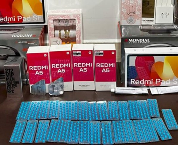 Na vistoria, os agentes encontraram eletrônicos, brinquedos e perfumes. Entretanto, o comportamento nervoso de dois dos passageiros levantou suspeitas. Com eles, foram localizados comprimidos abortivos e uma bolsa contendo aproximadamente 600 comprimidos para disfunção erétil. Os medicamentos, de origem paraguaia, possuem comercialização proibida no Brasil.