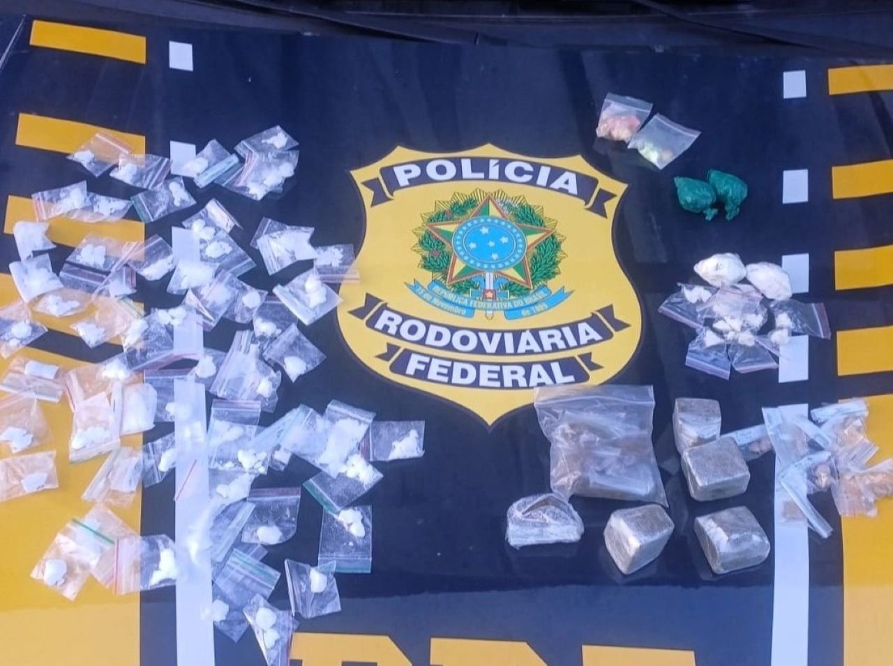 A Polícia Rodoviária Federal (PRF) prendeu, na tarde desta quinta-feira (18), um motociclista que transportava diferentes tipos de drogas prontas para entrega. A ocorrência foi registrada na BR-101, em Paulo Lopes, no Sul de Santa Catarina.