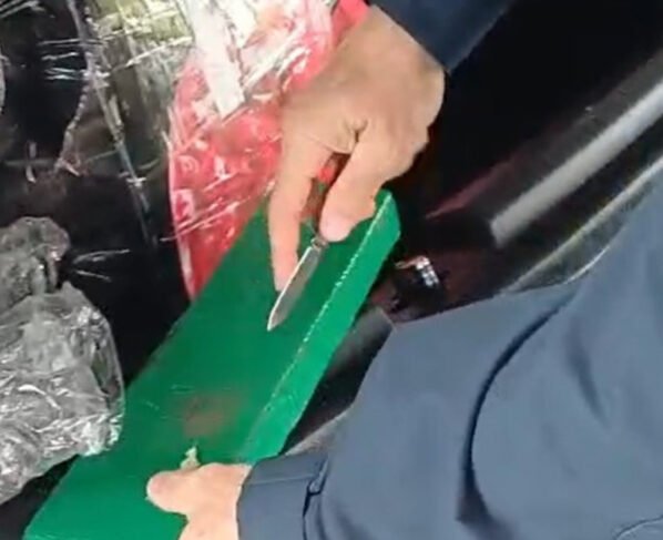 Dois pacotes da substância foram localizados debaixo do banco do passageiro, junto de um facão. No porta-malas, os agentes encontraram uma caixa de papelão contendo mais porções de maconha. Além da droga, foram apreendidos dois celulares — um deles destruído e escondido sob o banco do motorista.