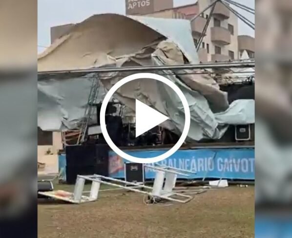 Vento forte causou estrago em estrutura de show em Balneário GaivotaFoto: Marcos Click/Reprodução Rajadas de…