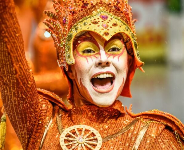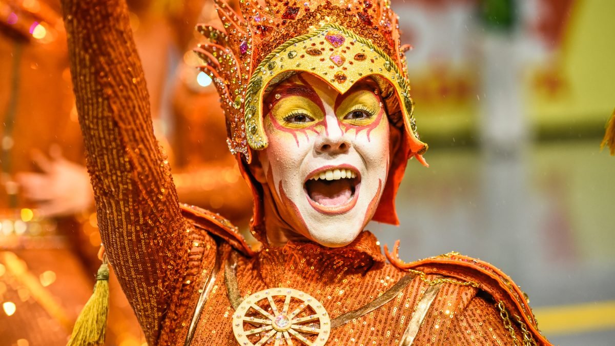 Porta-bandeira carrega bandeira da União da Ilha da Magia com alegria e amor pela escola de samba – Mafalda Press/ND Mais