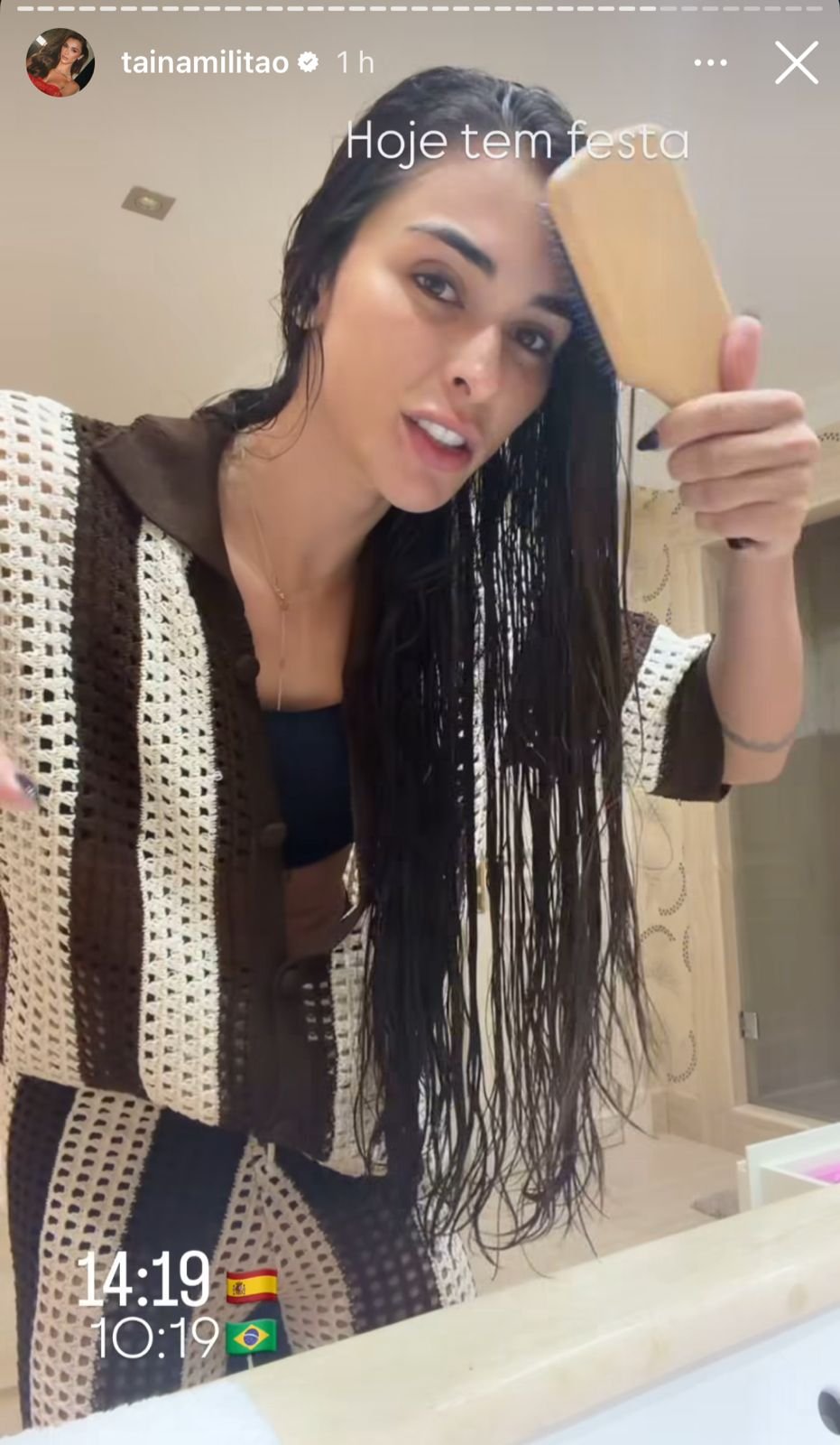 Nos stories do Instagram, Tainá contou que começou o dia animada: treinou cedo, tomou um banho e já se preparava para o dia cheio pela frente: “Hoje temos festa! Festa de Halloween! Preciso me arrumar e arrumar as crianças… Vai ser ótimo, nossa festa vai ser maravilhosa, amém!”, declarou a influenciadora digital.
