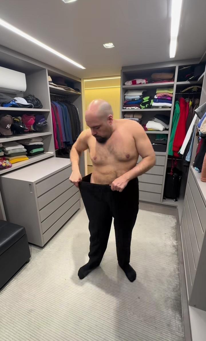 O ator e apresentador Tiago Abravanel iniciou um processo de emagrecimento com remédios há cerca de um mês. Focado, o artista de 37 anos mostrou, nesta quarta-feira (3/9), por meio das redes sociais, que suas roupas já estão ficando largas, confirmando que está conseguindo perder peso.