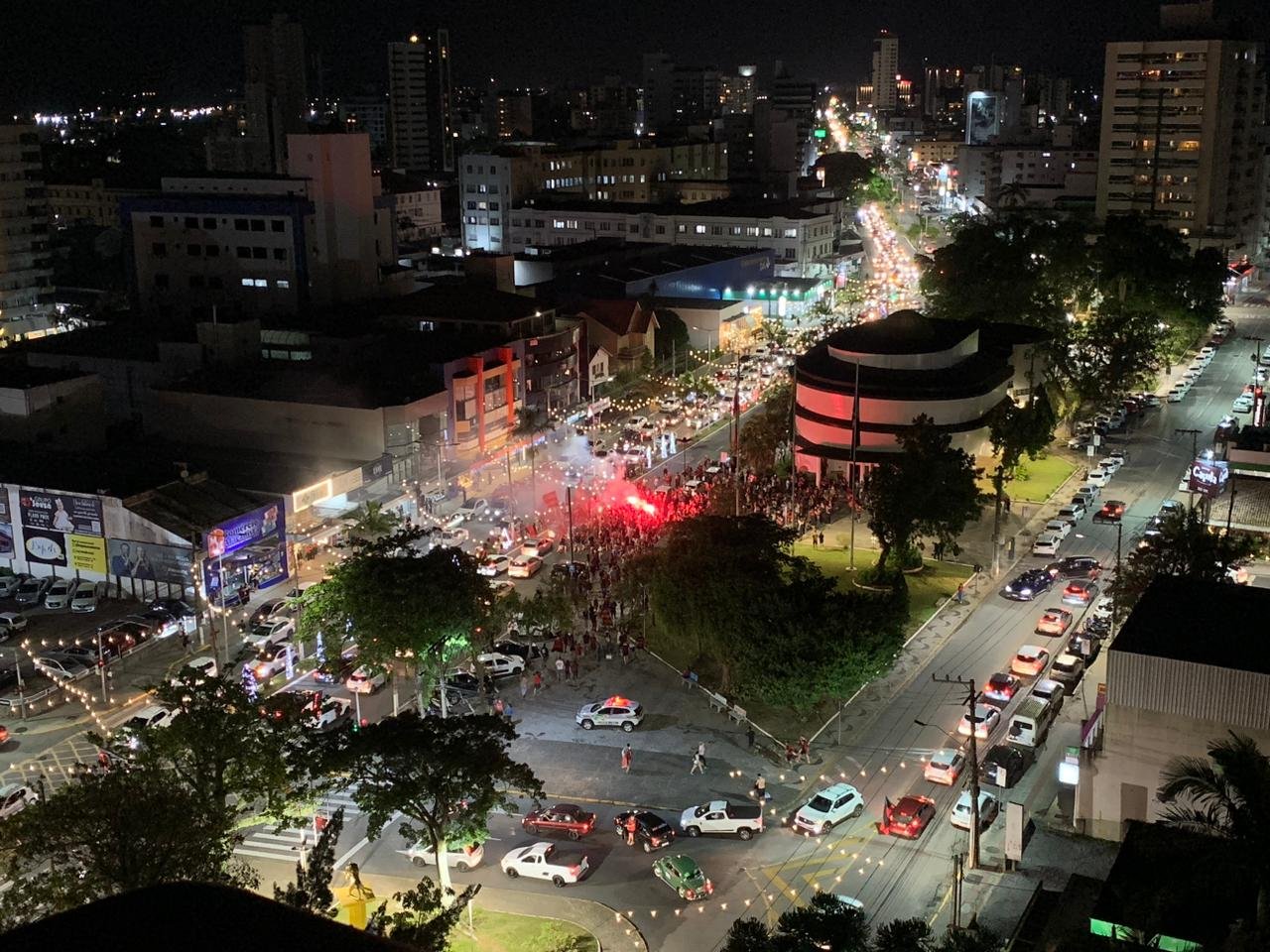 O anoitecer do sábado (29) chegou com buzinas, som alto, gritos e muito agito na região Central de Tubarão, por parte dos torcedores do Flamengo que se reuniram na Avenida 7 de setembro para comemorar o título da Libertadores conquistado ao vencer o Palmeiras na decisão do torneio continental.