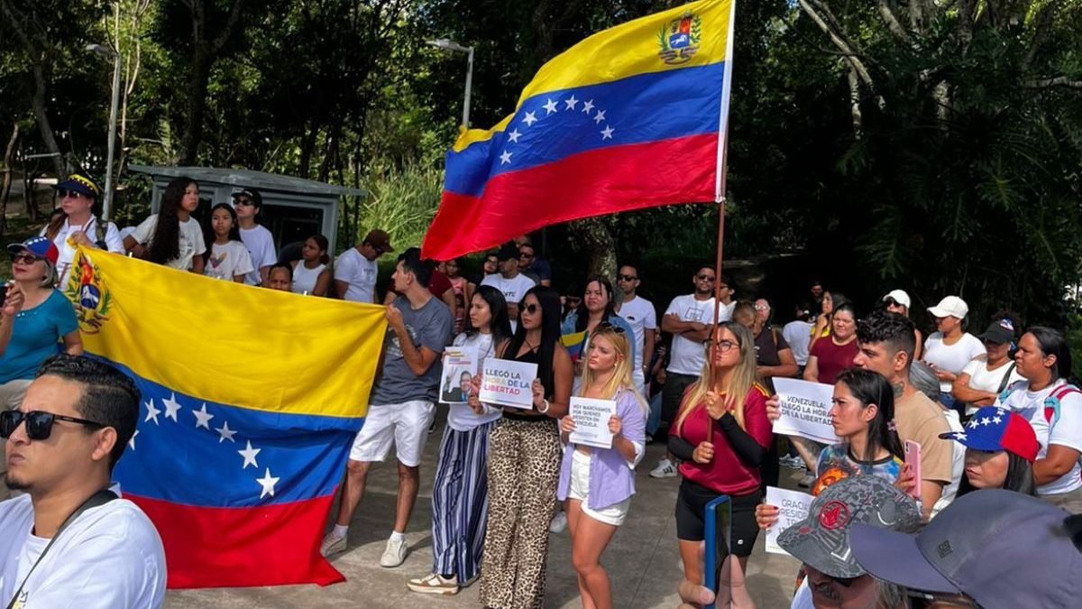 Com bandeiras, cartazes e gritos de liberdade, o ato reuniu pessoas que deixaram a Venezuela nos últimos anos em razão da crise política, econômica e humanitária vivida no país.