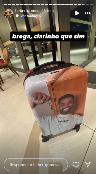 Hebert compartilhou a viagem, mas sem dar o nome do destino, minutos antes de embarcarReprodução: Instagram/@hebertgomes